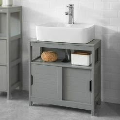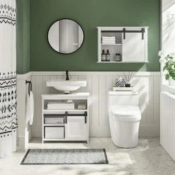 SoBuy Under Sink Cabinet Bathroom Vanity Unit Bathroom Storage Cabinet With Sliding Door,BZR61-W