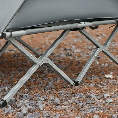 Bed is made of powder coated strong aluminum tube frame and durable polyester fabric.