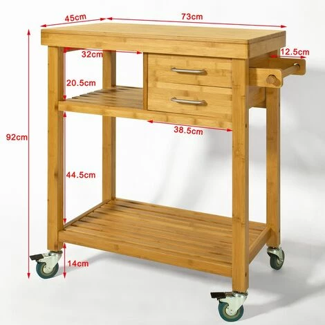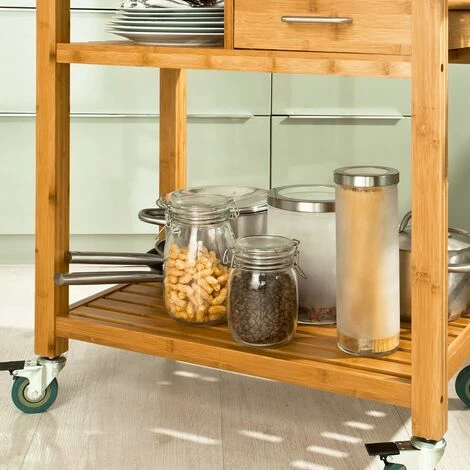 This practical kitchen cart is made of high quality and robust bamboo.