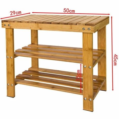 - This natural bamboo shoe rack can be used as a bench which provides sitting while putting on and taking off shoes.