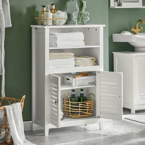 It has 2 shelves and 1 cabinet with internal adjustable shelf to ensure ample storage for all your bathroom essentials.