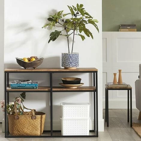 Made of high quality MDF with wooden effect and black powder coated steel frame. Stable and durable.