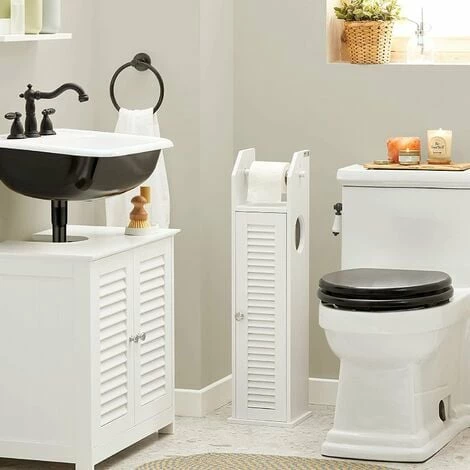 Opening the door, there is spacious space for storing toilet paper and toilet brush & holder, and will always be on hand for when you need it.
