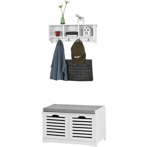 - A very practical unit that comprises of a shoe storage bench and a wall coat rack.