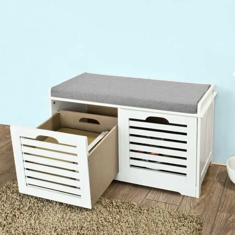 - Shoe Storage Bench has 2 drawers can be pulled out completely as a great storage solution.