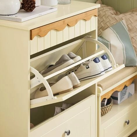 Full of presence, the shoe cabinet in cream fills any room with warmth and comfort.