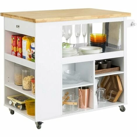 About this item- SoBuy Kitchen Island with Rubber Wood Worktop Kitchen Storage Trolley,FKW97-WN