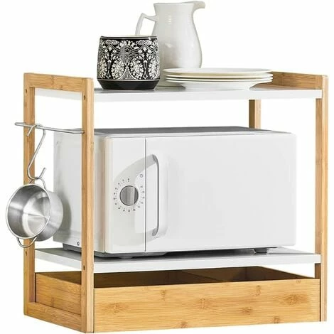 This versatile and practical shelf is a good addition to your kitchen. An easy and stylish way to maximize kitchen space.