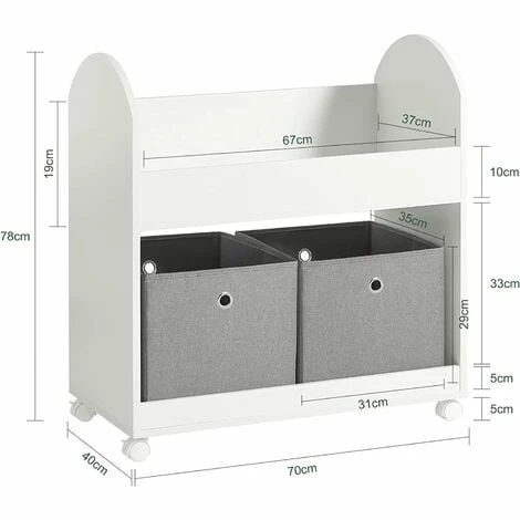 Made of high quality MDF in white lacquer. 2 drawers are made of non-woven fabric in grey. Stable and durable.