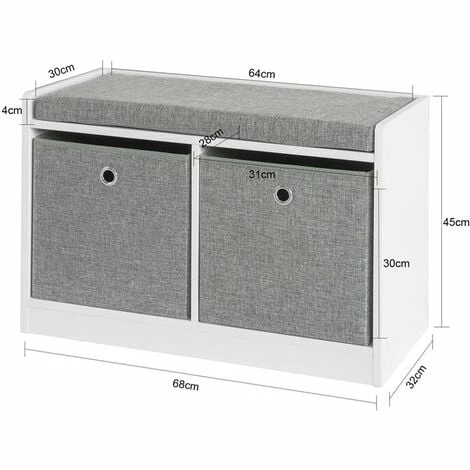 - Comfortable seat cushion in grey is removable. 3 baskets can be pulled out completely as a great storage solution.