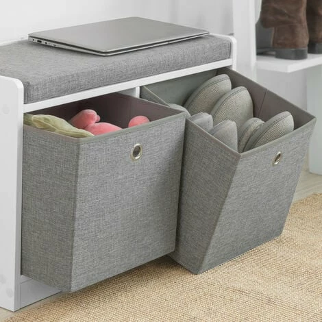 SoBuy Storage Shoe Bench with Seat Shoe Chest with 2 Grey Baskets,FSR65-K-DG