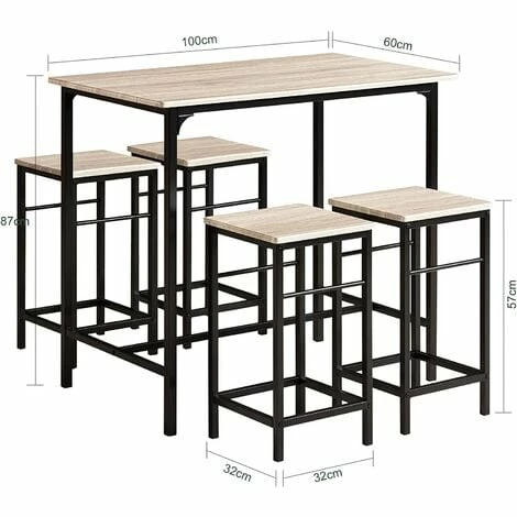 - Dimensions: Table: L100 x W60 x H87cm. Stool: L32 x W32 x H57cm.